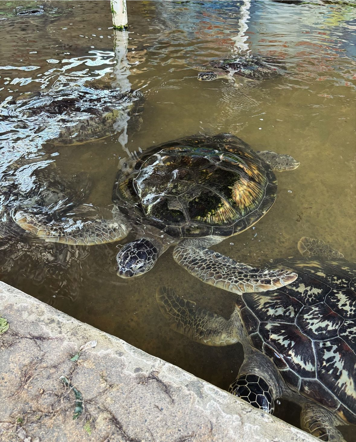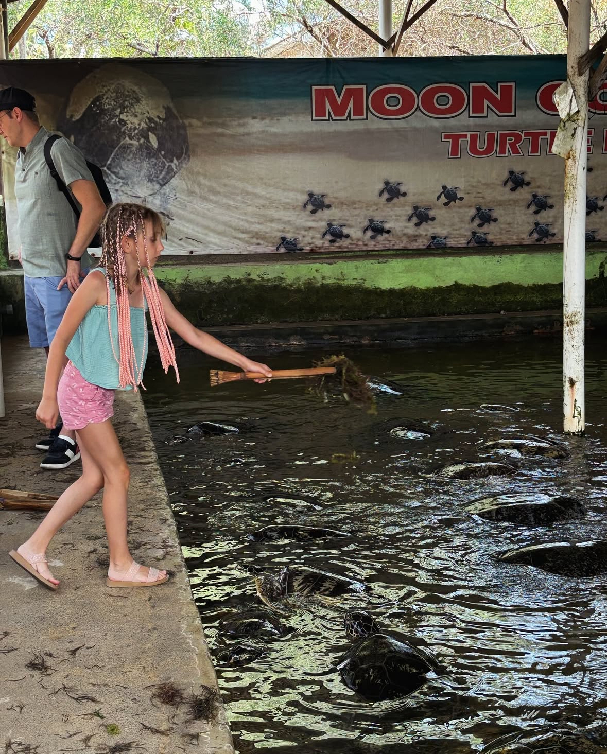 Mai aproape de cazarea noastră, am fost foarte uimiți când șoferul ne-a spus că am ajuns, pentru că nu doar drumul pe care am ajuns ci și fundătura unde a oprit păreau un capăt de lume. Când auzi că un loc are “conservator” în denumire, te aștepți la ceva cel puțin… curat. Ei, broaștele, păsările și celelalte lighioane trăiau în condiții mizere. Totuși, mie mi-a plăcut enorm pentru că am decis să ignor murdăria și să mă focusez pe plusuri: am pus mâna pe broaștele țestoase, le-am hrănit, am mângâiat un cacadu, o iguana (!) adormită, le-am dat papaia unor lilieci gigantici și am aflat multe despre ce fac cei de la conservator. Ajută broscuțele să eclozeze în siguranță și tot așa le eliberează și în apă, ferindu-le de prădători. Cele mai tinere aveau doar o săptămână și cea mai bătrână 80 de ani. A fost prima întâlnire cu animalele astea și m-am bucurat de ea.