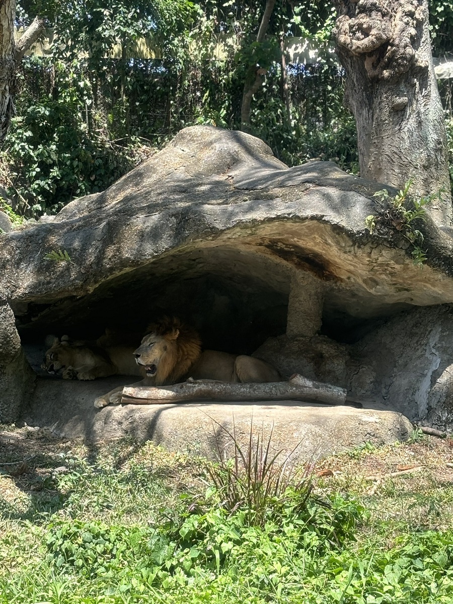 După care ne-am urcat într-un bus cu ferestre largi și am pornit în safari. Lei, hipopotami, zebre, cămile, girafe, maimuțe, antilope, tapiri și multe alte animale trăiau ‘libere’ în spațiile desemnate lor. Desigur leii aveau parcela lor închisă cu uși de metal și garduri solide ascunse în spatele vegetației, dar zebrele și cămilele, de exemplu, se plimbau libere prin satul cu cazări pentru cine dorea să fie salutat dimineața de o girafă care își băga capul pe fereastră. Așa ca în clipurile de pe Instagram. Aveau și piscină și loc de joacă pentru copii, cred că e o experiențe interesantă pentru cine vrea să încerce o noapte-două.