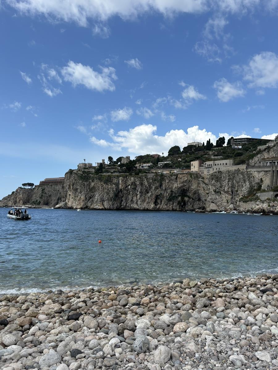 Însă și mai frumoasă decât orașul de sus e Isolabella, pe care a pomenit-o Nico I numind-o locul pe care vrea să îl vadă neapărat. Înainte să urcăm cu funicularul în orașul de sus, am luat un taxi de la gară, ne-am înghesuit toate 5 în mașină ca să nu mergem pe jos pe marginea șoselei și când am dat cu ochii de ea… Habar nu aveam că există pe Pământ și ce surpriză minunată a fost! Ca să ajungi la ea trebuie trecută marea, pe jos, idee care mi-a plăcut până să mă descalț… pietre și pietricele și nisp… neplăcut.
