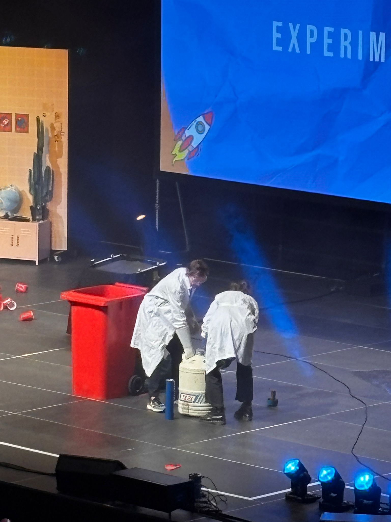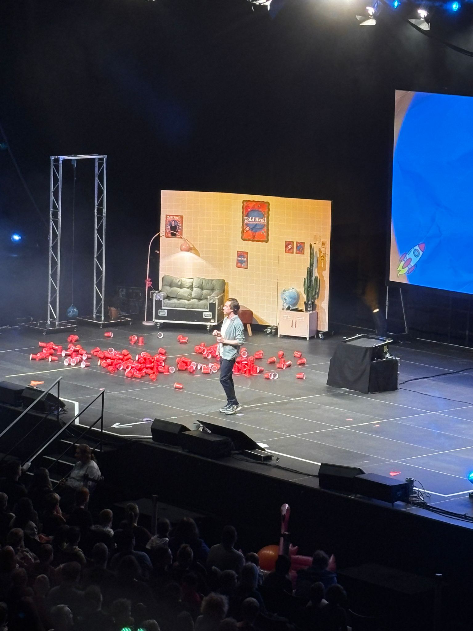 Tobi Krell este un moderator TV care face emisiuni și filme pentru copii. Ada era lipită de TV când era mai mică și urmărea multe episoade unul după altul pentru că sunt foarte fain făcute. Chiar și eu mă opream din ce făceam și mă uitam la ele. Informative, pe tot felul de subiecte și întrebări, iar copiilor le place în special pentru că Checker Tobi e foarte amuzant și nu se dă înapoi să încerce el însuși orice. A venit în turneu prin Germania pentru a fi printre copii. Sala plină ochi, urlete și chiuieli cât încape, dar jur că te încarci pozitiv când vezi copiii veniți să vadă un om de la care învață numai lucruri bune. A adus nitrogen lichid pe scenă și a invitat copii să facă cercuri cu el, au făcut experimentul cu Cola și Mentos și a explicat că pentru ca jetul să fie mare, e musai ca Cola să fie fierbinte. Ce le-a plăcut și mai mult a fost o demonstrație cu ecranul verde în spate, după ce li s-a arătat un filmuleț în care Tobi se aruncă din avion, dar el era, de fapt, în studio.
