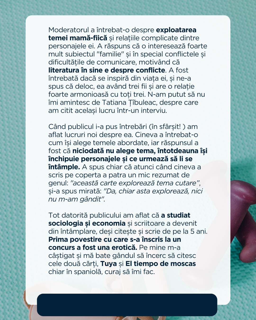 Pe 7 ianuarie am participat la un eveniment care o avea pe Claudia Pineiro invitată și cu ocazia asta am fost prima oară la Institutul Cervantes din Berlin. Despre eveniment am scris pe Instagram, așa că las mai jos ce am postat. Mi-a plăcut foarte mult și după ce am citit Elena știe, am știut că voi mai citi și altceva de la ea.