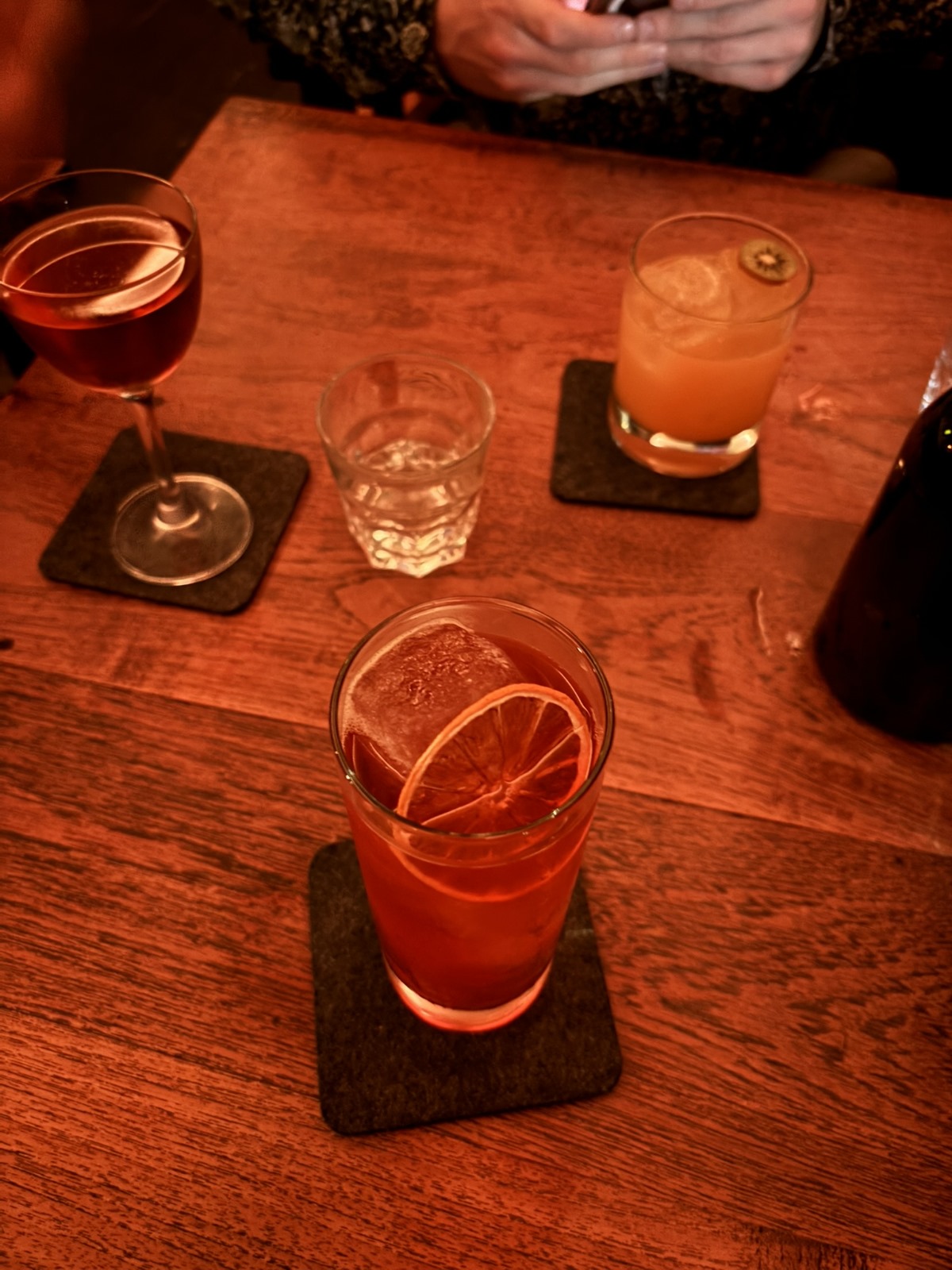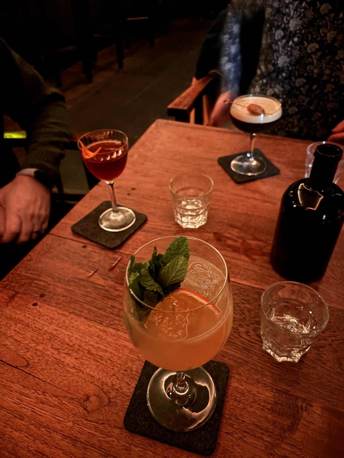 Timp în care, am profitat în sfârșit și am onorat promisiunea de a merge cu un fost coleg de al Sotzului la un cocktail bar și a fost super. Și super scump, 17 euro cocktailul, dar partea interesantă e că nu au meniu, ci te întreabă care sunt băuturile preferate și de acolo se descurcă ei. Eu le-am spus că-mi plac cocktailurile dulci-acrișoare (gen Wilberry Lillet, Limoncello Spritz, Mojito, Mai Tai etc) și mi-au adus niște bunătăți că aș fi băut întruna :))