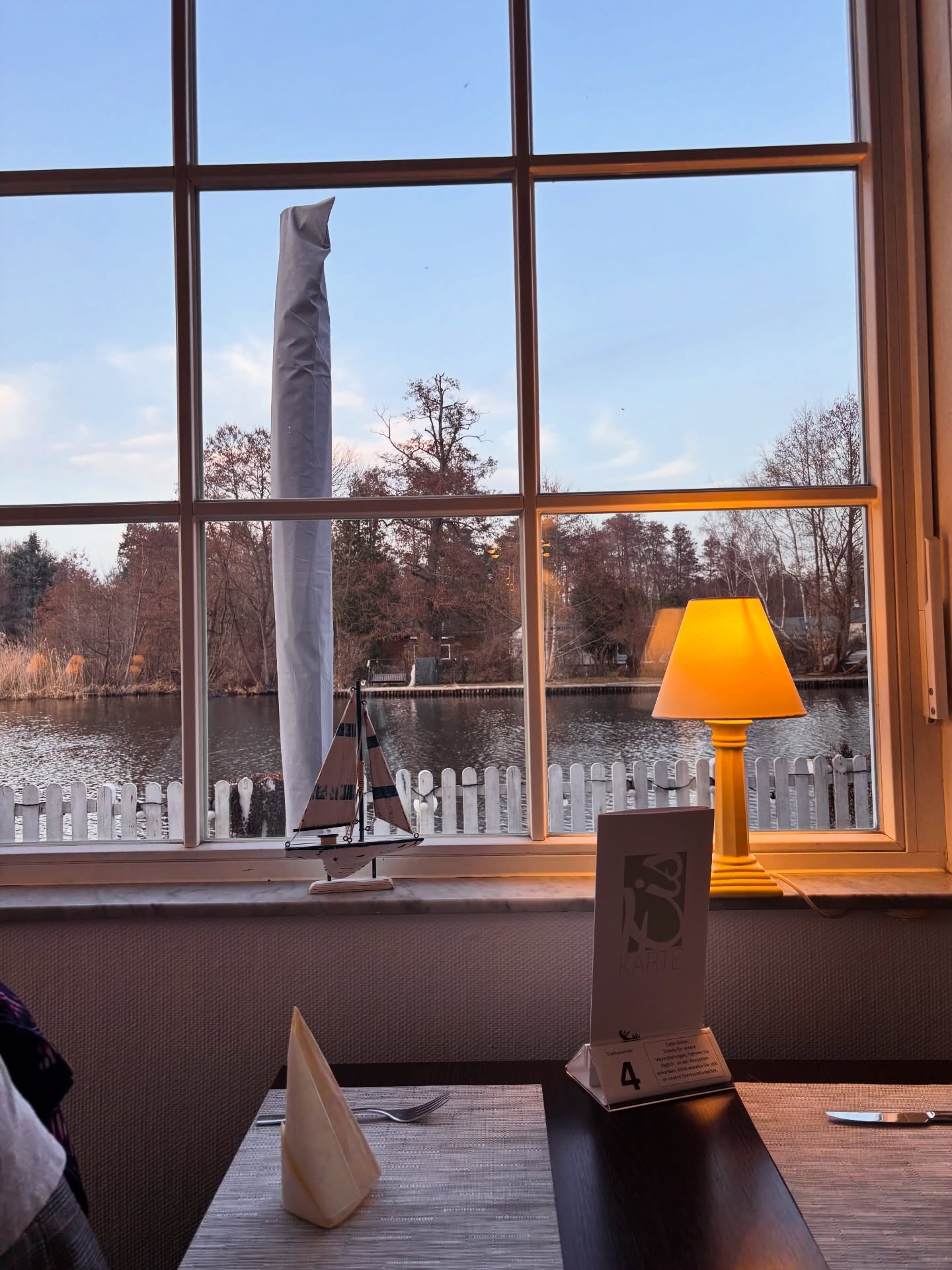 8 Martie a început cu clubul de carte românească din Berlin, unde am discutat Zavaidoc, după care, când m-am întors, am pus piciorul în prag și am scos familia din casă, că doar era Ziua Femeii, a Mamei bla bla. Soțu’ a ales un turn în care nu mai urcasem, aproape de casă, deci ne-am dus la Müggelsee să vedem pădurea și lacurile de sus, din Müggelturm. Și ca să sărbătorim puțin și această zi dedicată mie, am fost la un restaurant, tot ales de Sotz, de care am fost foarte impresionată și unde vreau să mai mergem.