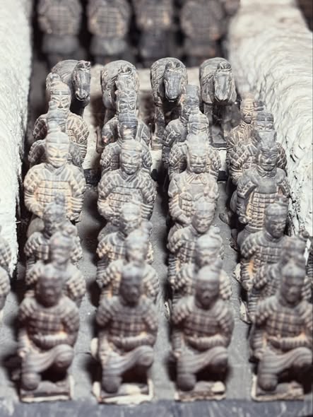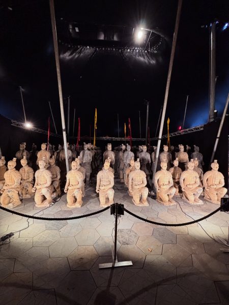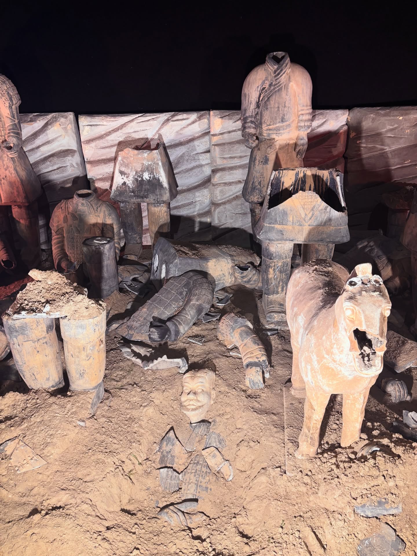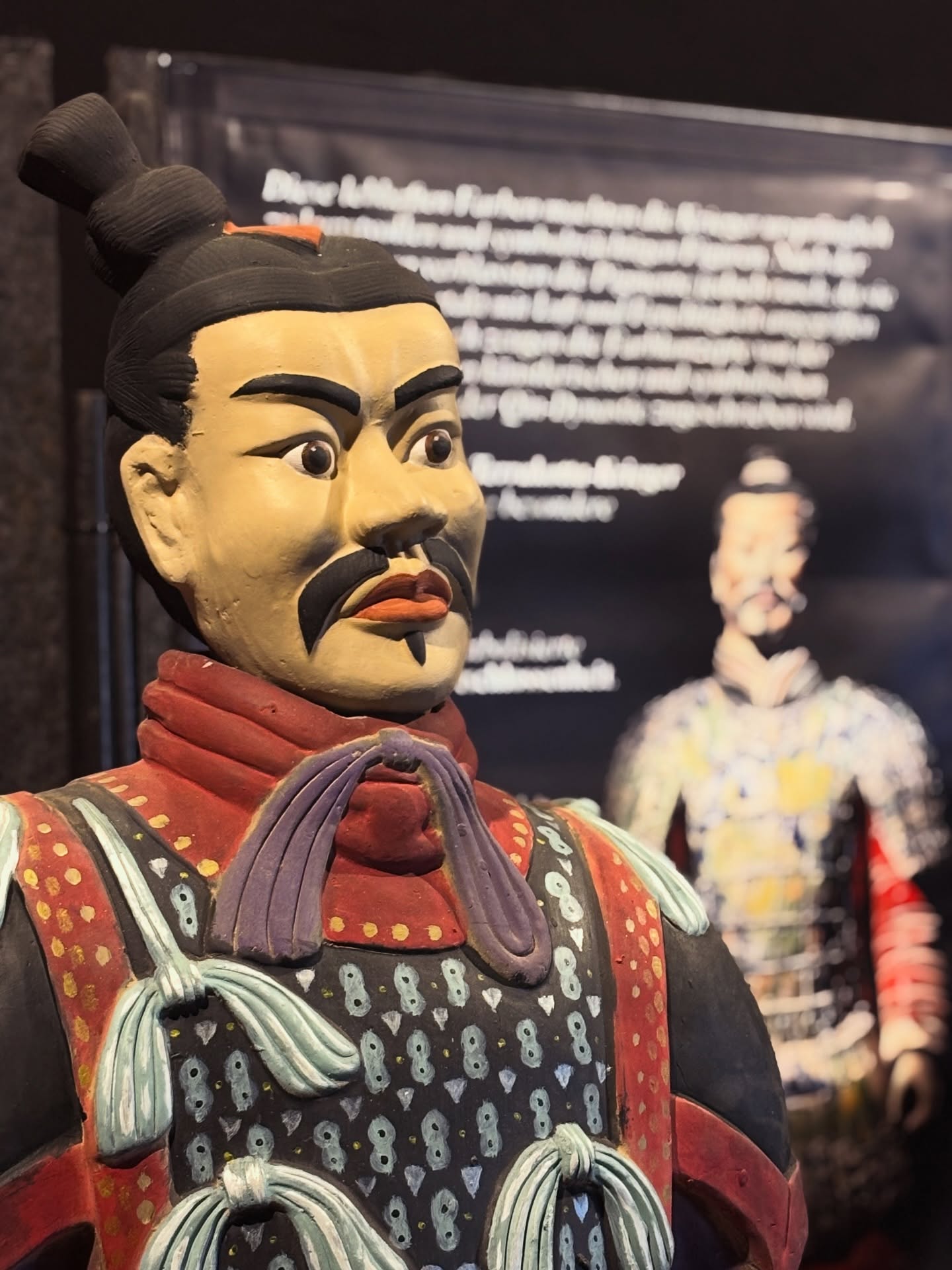 Atâta reclamă i s-a făcut acestei expoziții cu luni înainte, că am zis că musai e ceva de capul ei. Ne-am luat bilete pentru duminică și împreună cu încă o amică nouă (timișoreancă de-a mea) am fost să vedem câteva statui de teracotă roșie în mărime naturală, parte din suita de 8000 de altele descoperite întâmplător în 1974 de niște țărani. Această armată a fost construită timp de 10 ani pentru a păzi mormântul primului împărat al Chinei, Qin Shi Huang. Cum scriam și pe Facebook, am fost fascinată de această megalomanie, de meșteșugul cu care au fost create și de păstrarea lor sub pământ atâta amar de timp. După expoziție, ne-am ospătat la un restaurant grecesc din apropiere și duminca s-a încheiat acasă, eu pictând, Ada lucrând la un PPT pentru școală și Sotzu’ reparând aleea de pietre.